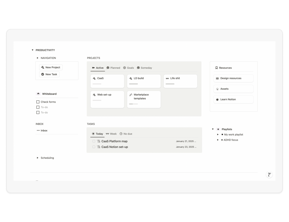 A minimalist Notion template for powerful yet simple organization. Inspired by the PARA framework, this template keeps everything neatly connected for efficiency.